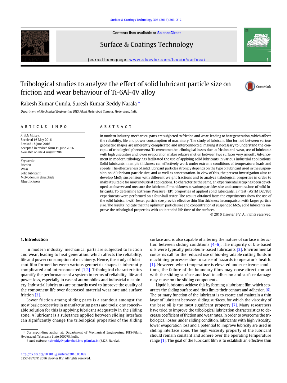 关键词:摩擦;固体润滑剂;二硫化钼;薄膜厚度