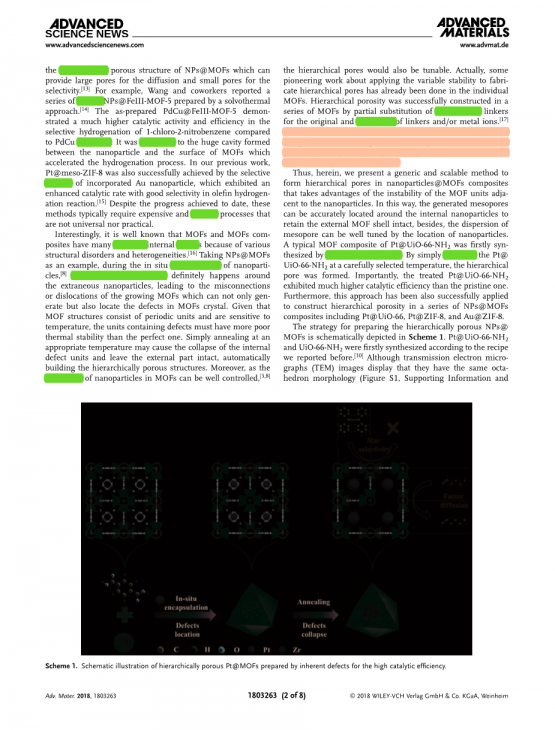 层状多孔纳米粒子结构@利用内在缺陷提高催化效率的金属-有机复合材料