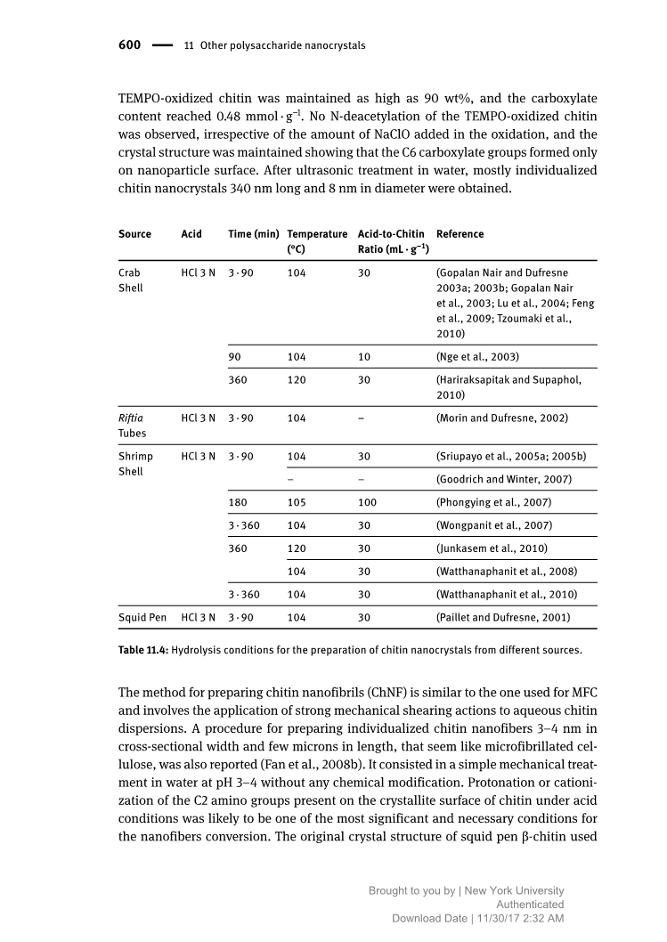 像其他多糖纳米粒子一样,甲壳素纳米晶体通常被加入到聚合物基质中,以制备具有预期性质的聚合物纳米复合材料。由于甲壳素纳米晶体的水分散体具有稳定性,故水是很好的的处理环境。因此,使用从鱿鱼骨中和绒毛虫管提取的甲壳素纳米晶体以乳胶形式的聚合,进行了开创性的工作。也报道了使用聚(环氧乙烷)和聚(环氧丙烷)的共聚物作为表面活性剂制备PCL胶乳,使用绒毛虫中提取的甲壳素纳米晶体增强的纳米复合材料。在这项研究中,使用了两种不同的技术被用来制备复合材料薄膜:(i)延流成膜,和(ii)冷冻干燥然后热压。