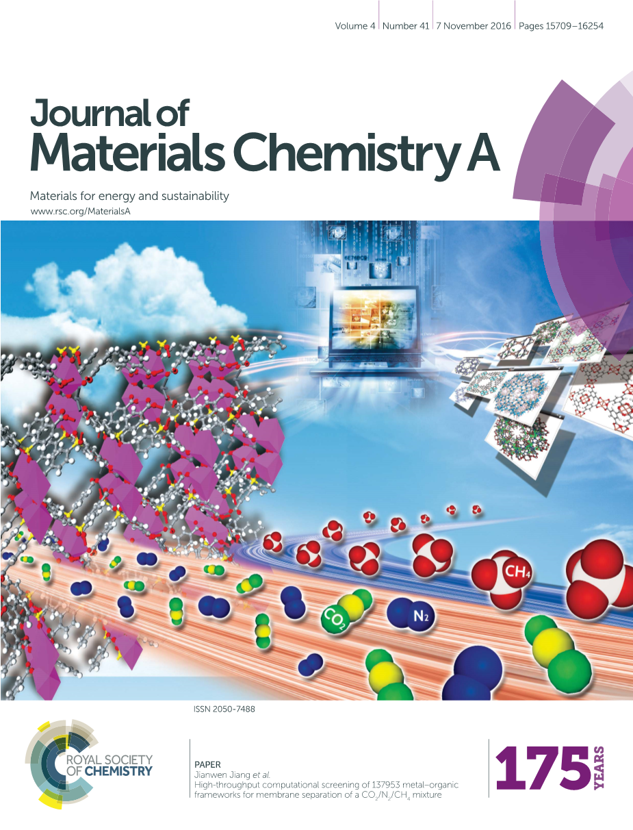 作为对环境无害的能源,天然气需要通过从CH4中分离杂质(如CO2和N2)来提高纯度。在目前的提纯技术中,CO2和N2需要通过多个消耗大量能量的步骤进行分离。于此,我们报告一个计算研究高通量筛选137953个金属有机骨架(MOFs)用于单级分离CO2/N2/CH4混合物。筛选策略由四个阶段组成。首先,计算极限孔径(PLD),并筛选出PLD为3-4Aring;的17257个MOFs。第二,用蒙特卡洛模拟和分子动力学模拟298K和无限稀释状态下,CO2、N2和CH4在17257个 MOFs中的亨利常数,并估算密度常数和渗透率。这戏参数与PLD的定量关系已被建立。第三,基于相对渗透选择性与渗透性,对CO2 / CH4和N2 / CH4的分离筛选出24种MOFs。最后,在298 K和10 bar条件下模拟了筛选出来的24个MOFs对三组分CO2/N2/CH4混合物的吸附,扩散和渗透,并确定了5个最好的MOFs用于膜分离CO2/N2/CH4。这个计算研究表明,PLD和一个新的结构参数(孔径分布的百分比)是控制扩散和渗透的关键因素,从下到上提供了定量的结构 - 性质关系,并且将有助于新的膜分离提纯天然气。