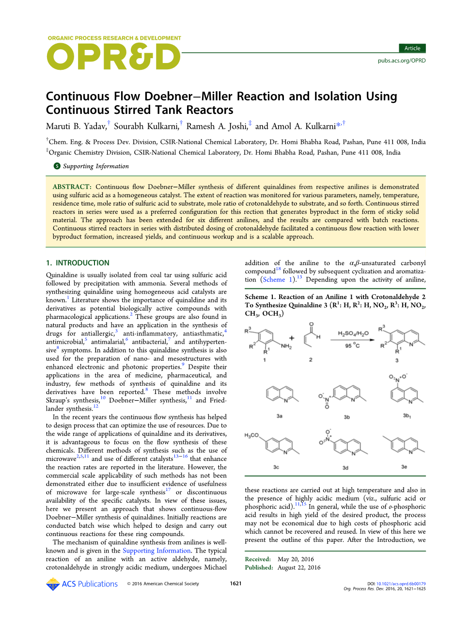 连续搅拌釜式反应器中连续流Doebner-Miller反应及分离外文翻译资料