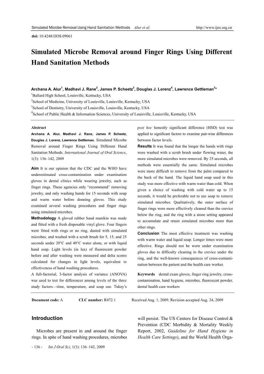 关键词:牙科检查手套;珠宝戒指;交叉污染;手部卫生;微生物;荧光粉;口腔卫生保健工作者