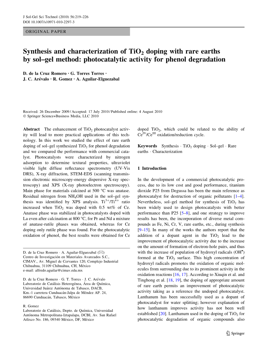 溶胶凝胶法TiO2稀土掺杂的合成和表征:降解苯酚的光催化活性