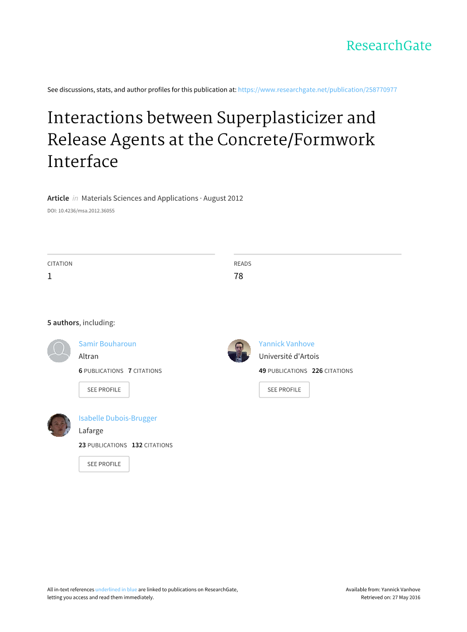 在混凝土/模板界面上的强塑剂和脱模剂的相互作用