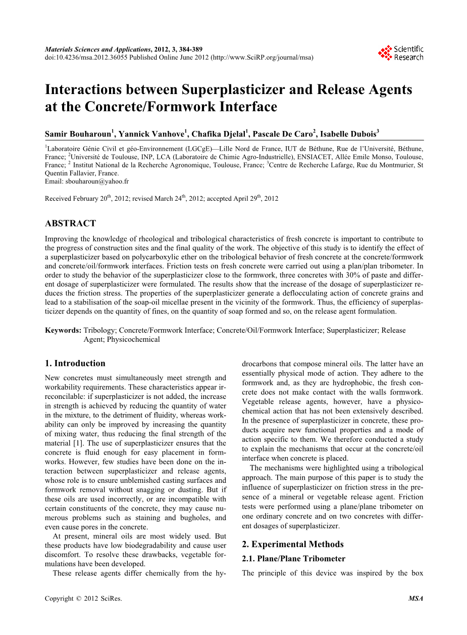 机制强调使用一种摩擦学的方法。本文的主要目的是研究在矿物或植物脱模剂的存在下,高效增塑剂对摩擦应力的影响。摩擦测试是在不同剂量的高效增塑剂存在的一种或两种混凝土上使用平面/平面摩擦计。