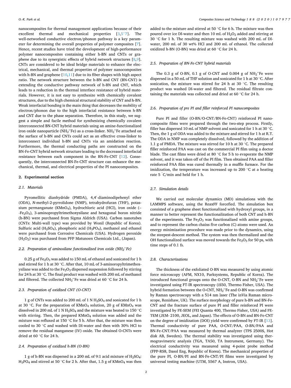均苯四酸二酐(PMDA),4,4 -二氨基二苯甲醚(ODA),N-甲基-2-吡咯烷酮(NMP),四氢呋喃(THF),高锰酸钾(KMnO4),盐酸(HCl),氧化铁(alpha;-Fe2O3 ),3-氨基丙基三甲氧基硅烷和六方氮化硼(h-BN)购自Sigma Aldrich(USA)。碳纳米管(CNT:多壁型)由Wonil((Republic of Korea)提供。 硫酸(H2SO4),磷酸(H3PO4),甲醇和乙醇购自Corrosive Chemicals(USA)。过氧化氢(H2O2)购自PFP Matunoen Chemicals Ltd.(日本)。