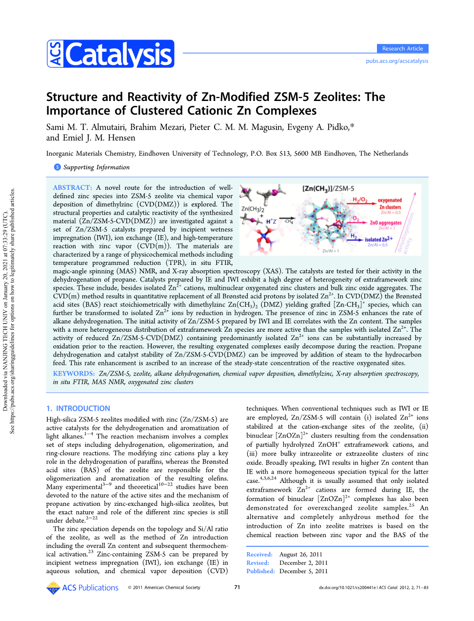 锌改性ZSM-5分子筛的结构和活性:簇合阳离子锌配合物的重要 性