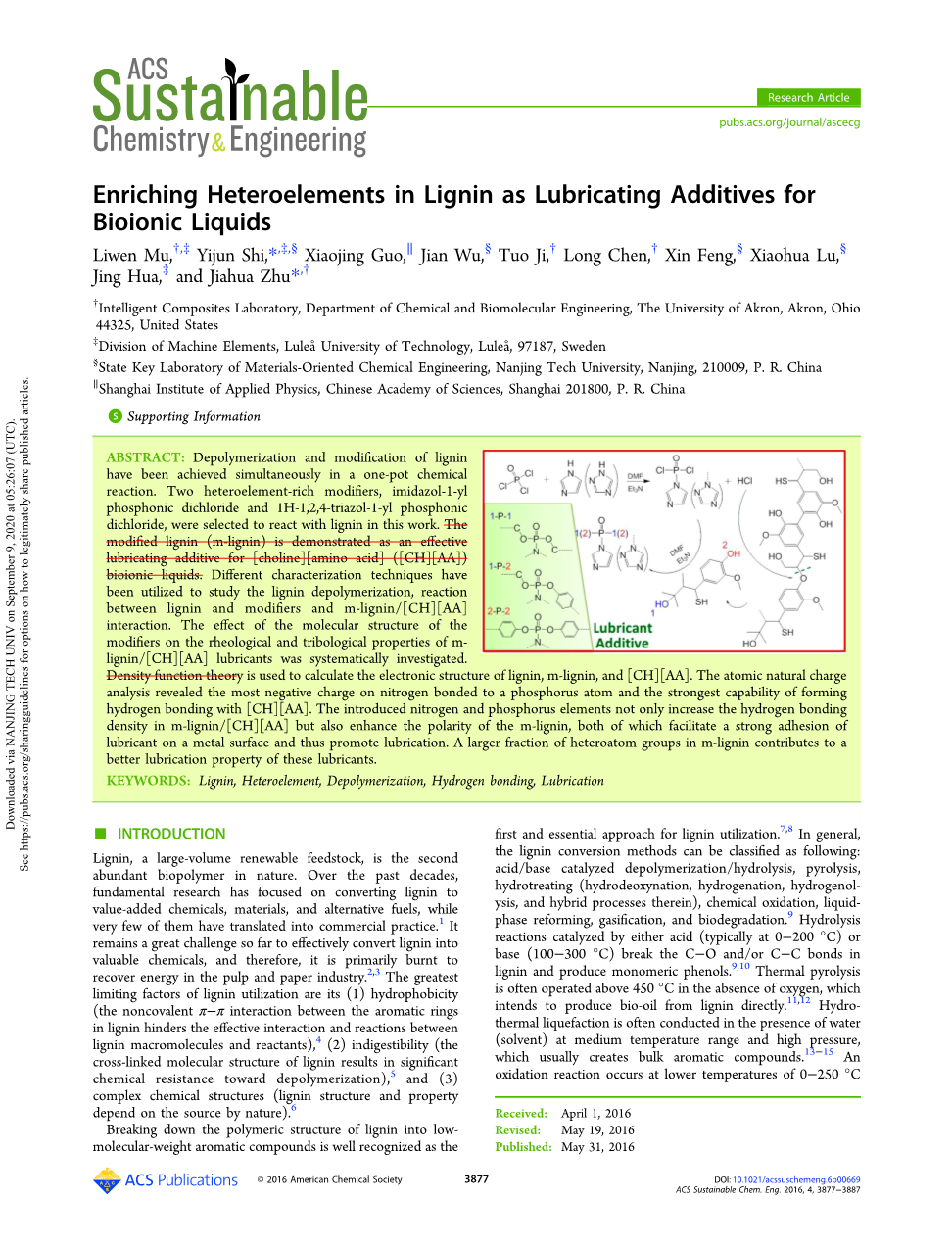 关键词:木质素、杂化、解聚、氢键、润滑。