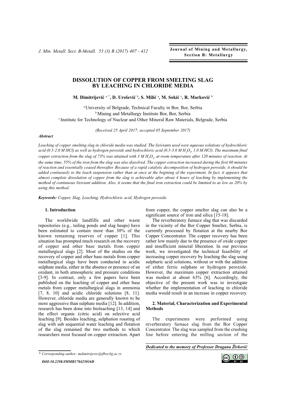 - Dimitrijević a, , D. uroscaron;ević b, S. Milić a, M. Sokić c, r. Marković b