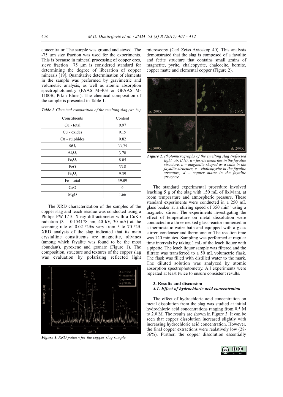 在塞尔维亚博尔铜冶炼厂附近废弃的反射炉炉渣,目前正在附近博尔铜选矿厂进行浮选处理。其中铜的回收率相当低,主要原因是由于氧化铜的存在和矿 物释放的不充分。在我们以前的研究工作中,我们探索了通过使用硫酸溶液浸取铜冶炼渣来增加铜回收量的技术可行性,而不添加硫酸铁或过氧化氢。然而,我们所获 得的最大铜萃取量仅为63%。因此,本工作的目的是调查在氯化介质中的浸出是否会导致在铜的回收率上的提升。
