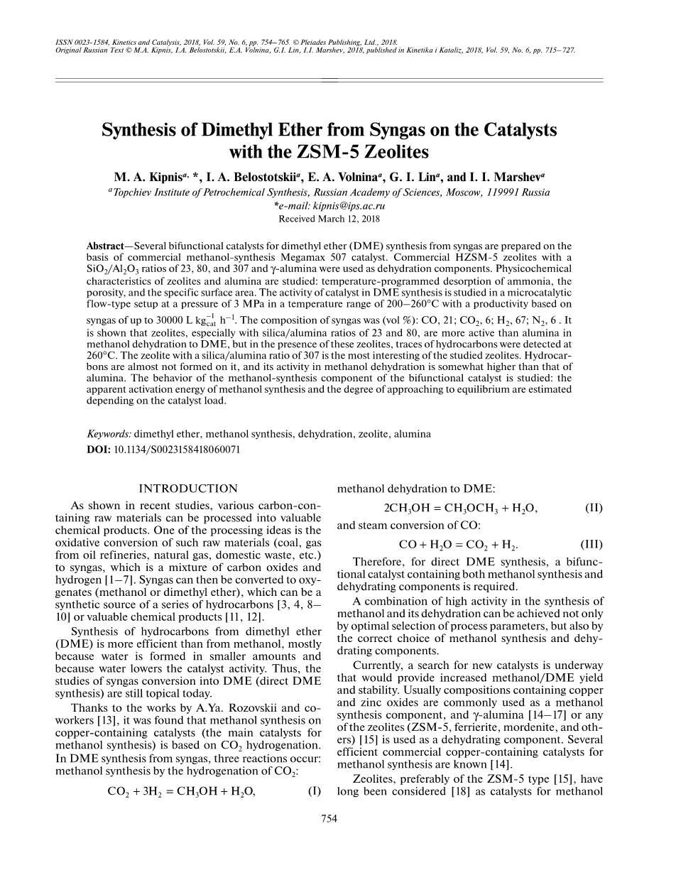 催化剂上合成气合成二甲醚ZSM-5沸石外文翻译资料