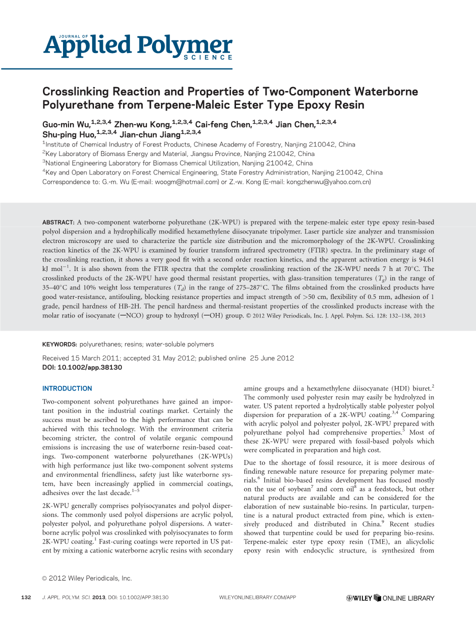 1化工研究所的林产品,中国林业科学院、南京210042年,中国