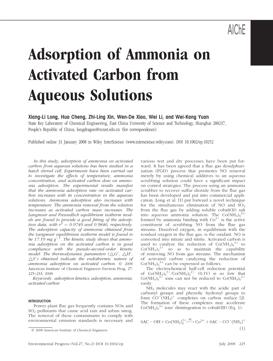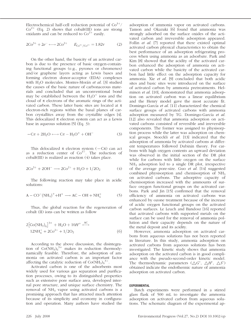 - 活性炭对水溶液中氨的吸附外文翻译资料