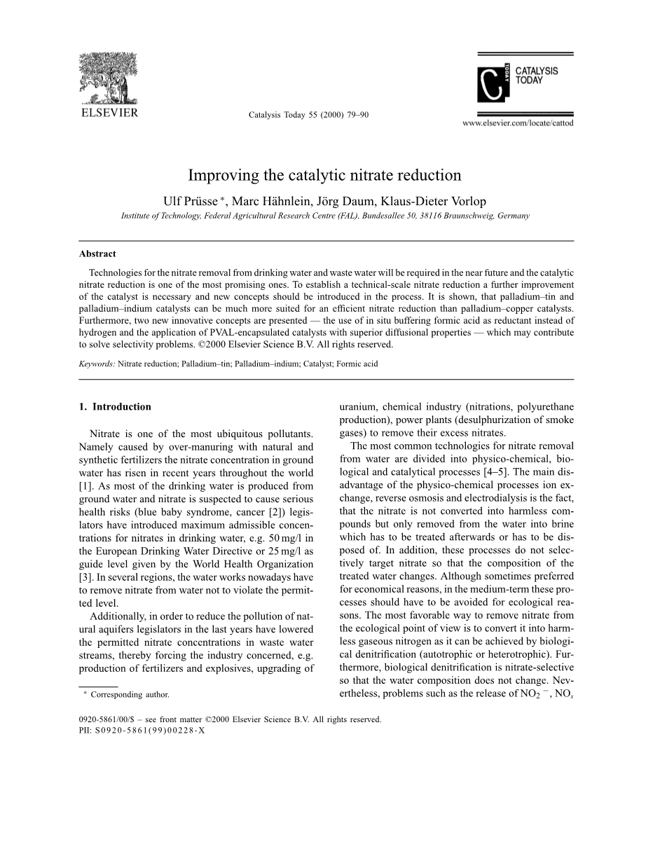 Ulf Pruuml;sse lowast;, Marc Hauml;hnlein, Jouml;rg Daum, Klaus-Dieter Vorlop