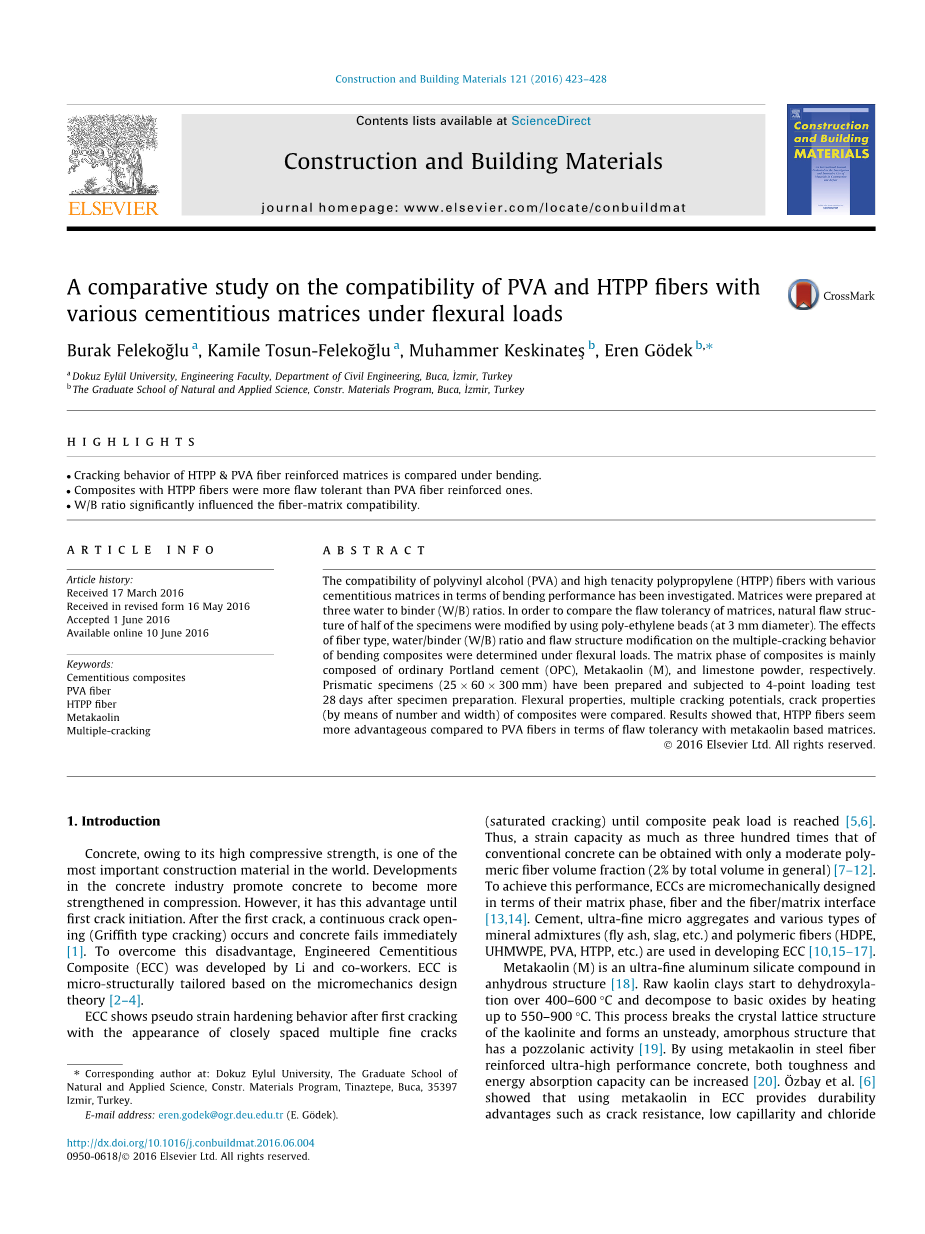 与广泛使用的聚合物如PVA和PE相比,聚丙烯(PP)是一种具有成本效益和全球可用的纤维生产替代原料。然而,传统的PP纤维与水泥基质呈现低拉伸强度和弱结合性能。因此,过去PP纤维的有效使用受到限制。随着聚合物技术的不断发展,主要是在纺丝工艺中,制造了一种抗拉强度为800-900MPa的新型高强度聚合物基纤维,称为高强度聚丙烯(HTPP)。杨和Felekoğlu等人已经研究过HTPP纤维作为其他纤维的替代品。 。已经开发了含有2%HTPP纤维的HTPP-ECC,其展现出高达4-8%的拉伸应变能力和3-4MPa极限拉伸强度。