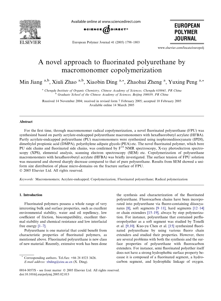 一种通过大分子单体共聚制备含氟聚氨酯的新方法外文翻译资料