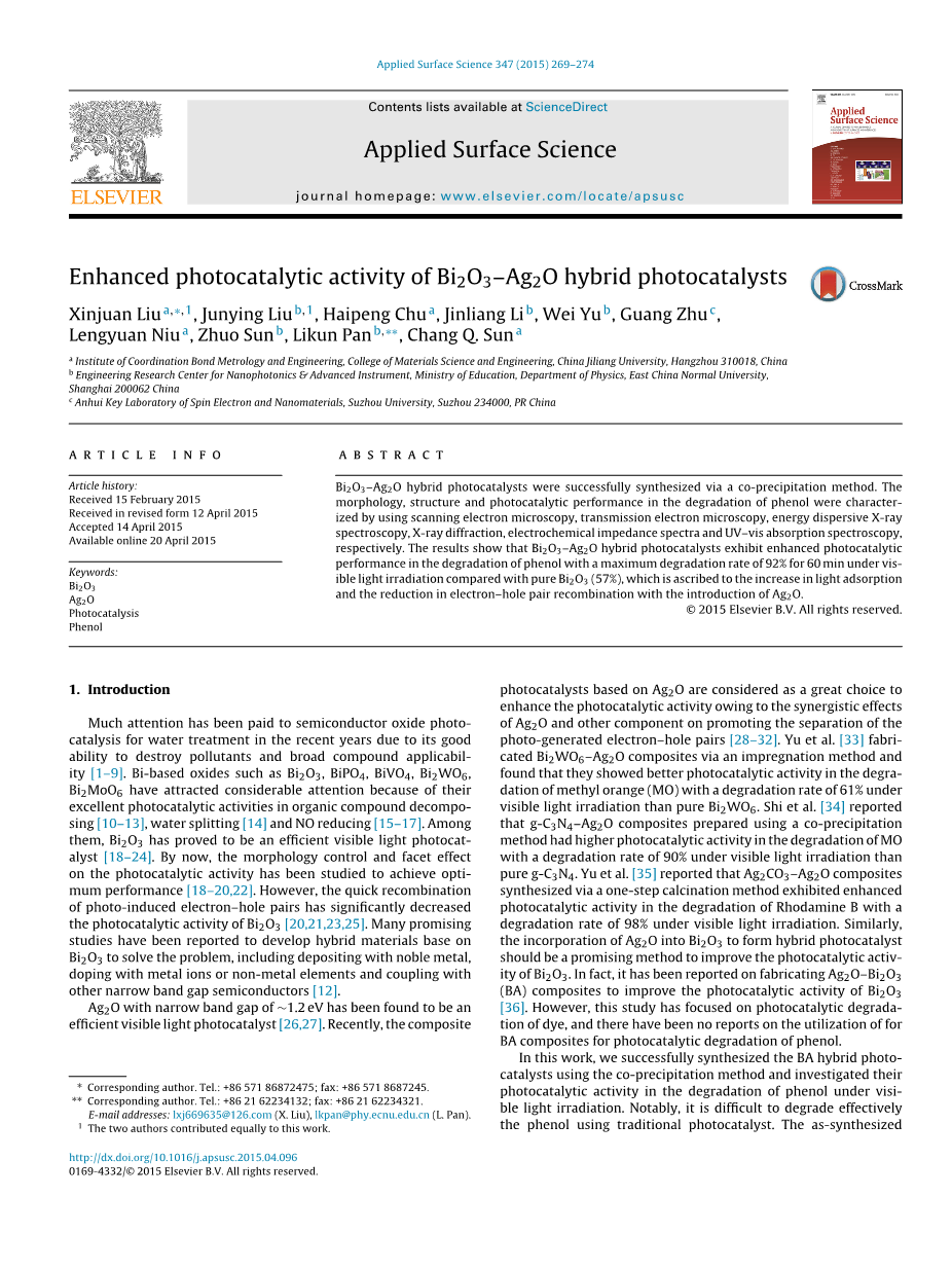 Xinjuan Liua, Junying Liub, Haipeng Chua, Jinliang Li , Wei Yub, Guang Zhuc, Lengyuan Niua, Zhuo Sunb, Likun Panb, Chang Q. Suna