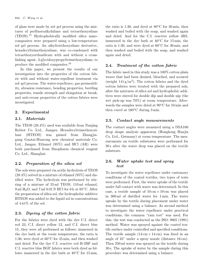 棉织物的防水性能溶胶-凝胶法整理外文翻译资料