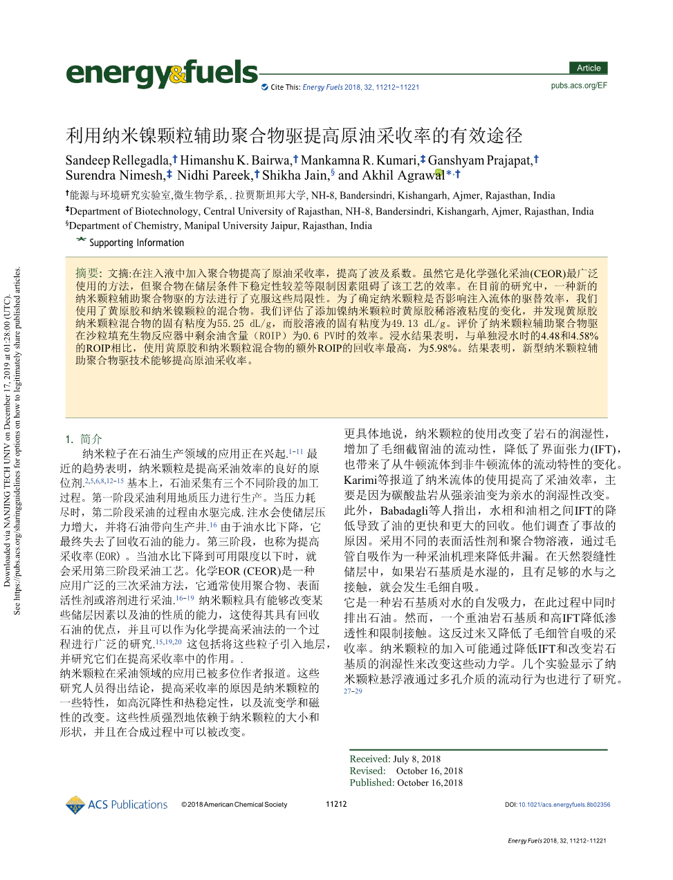 - 利用纳米镍颗粒辅助聚合物驱提高原油采收率的有效途径外文翻译资料