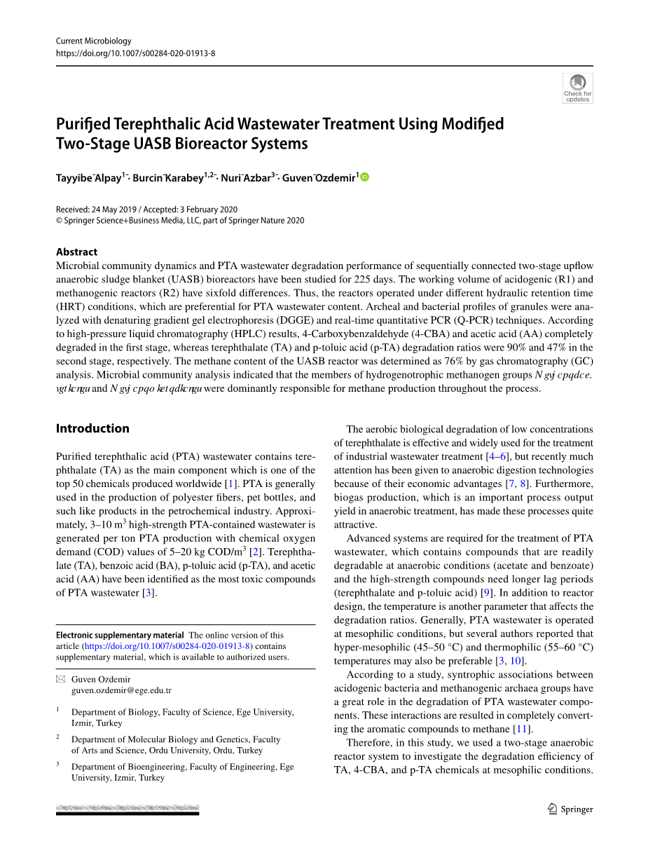 Tayyibe Alpay1 ·Burcin Karabey1,2 · Nuri Azbar3 · Guven Ozdemir1