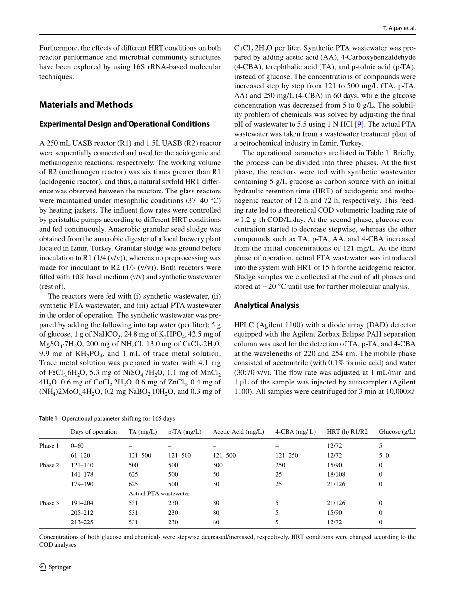 因此,本研究采用两级厌氧反应器系统,研究了中温条件下TA、4-CBA和p-TA化合物的降解效率。利用基于16S rRNA的分子技术,探讨了不同HRT条件对反应器性能和微生物群落结构的影响。