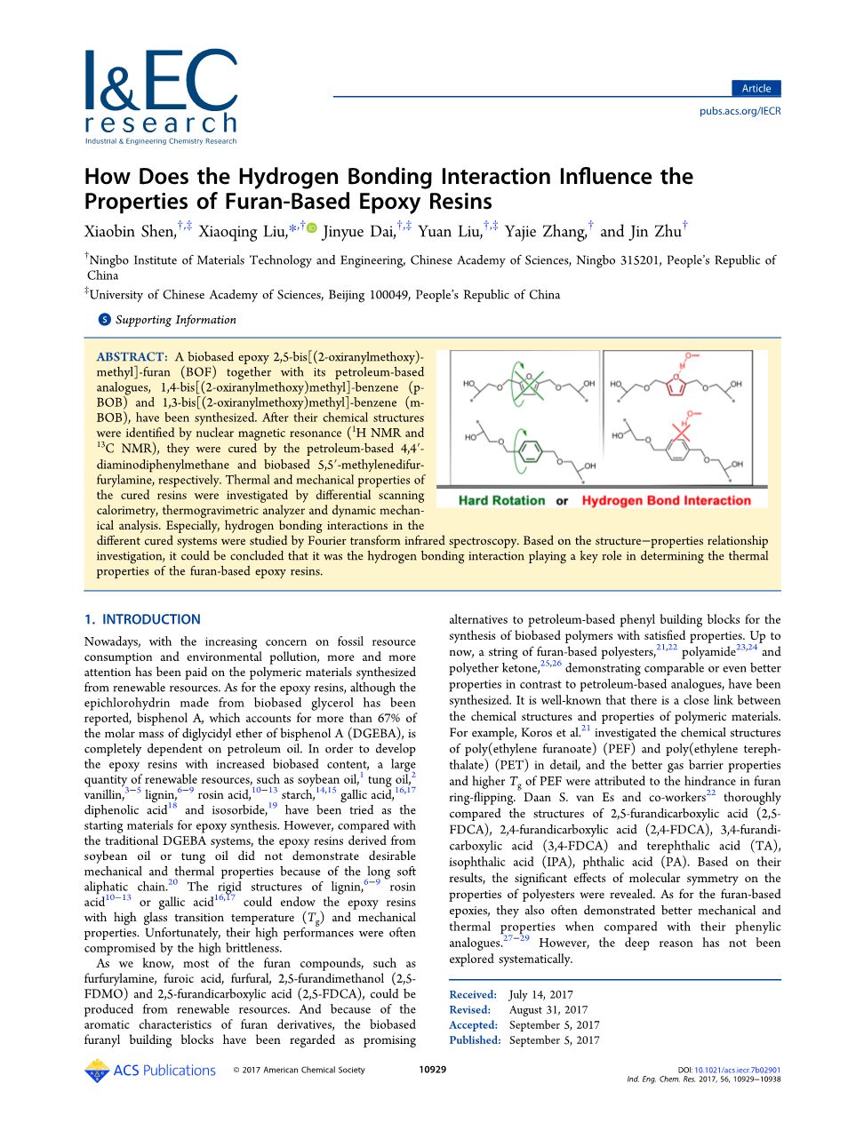 氢键相互作用对呋喃基环氧树脂性能的影响