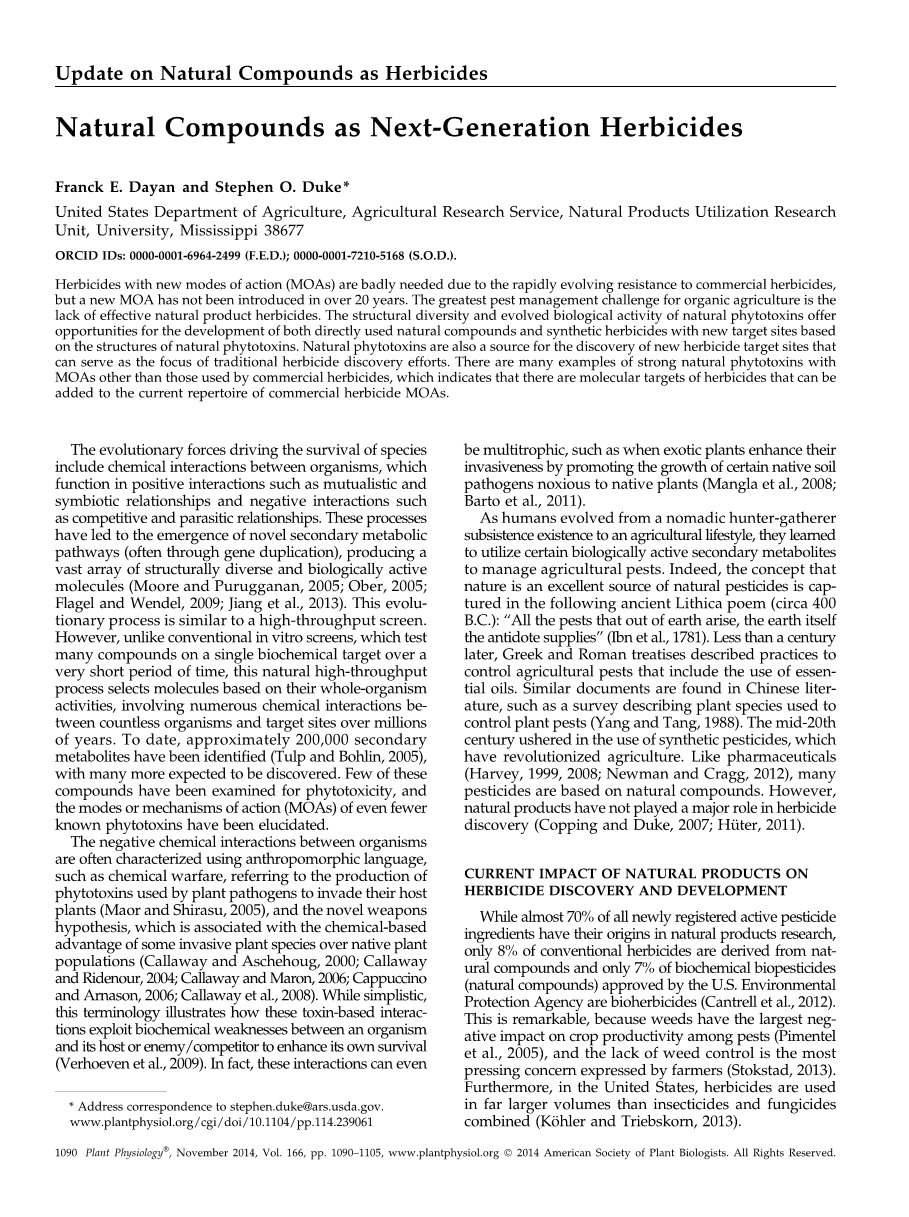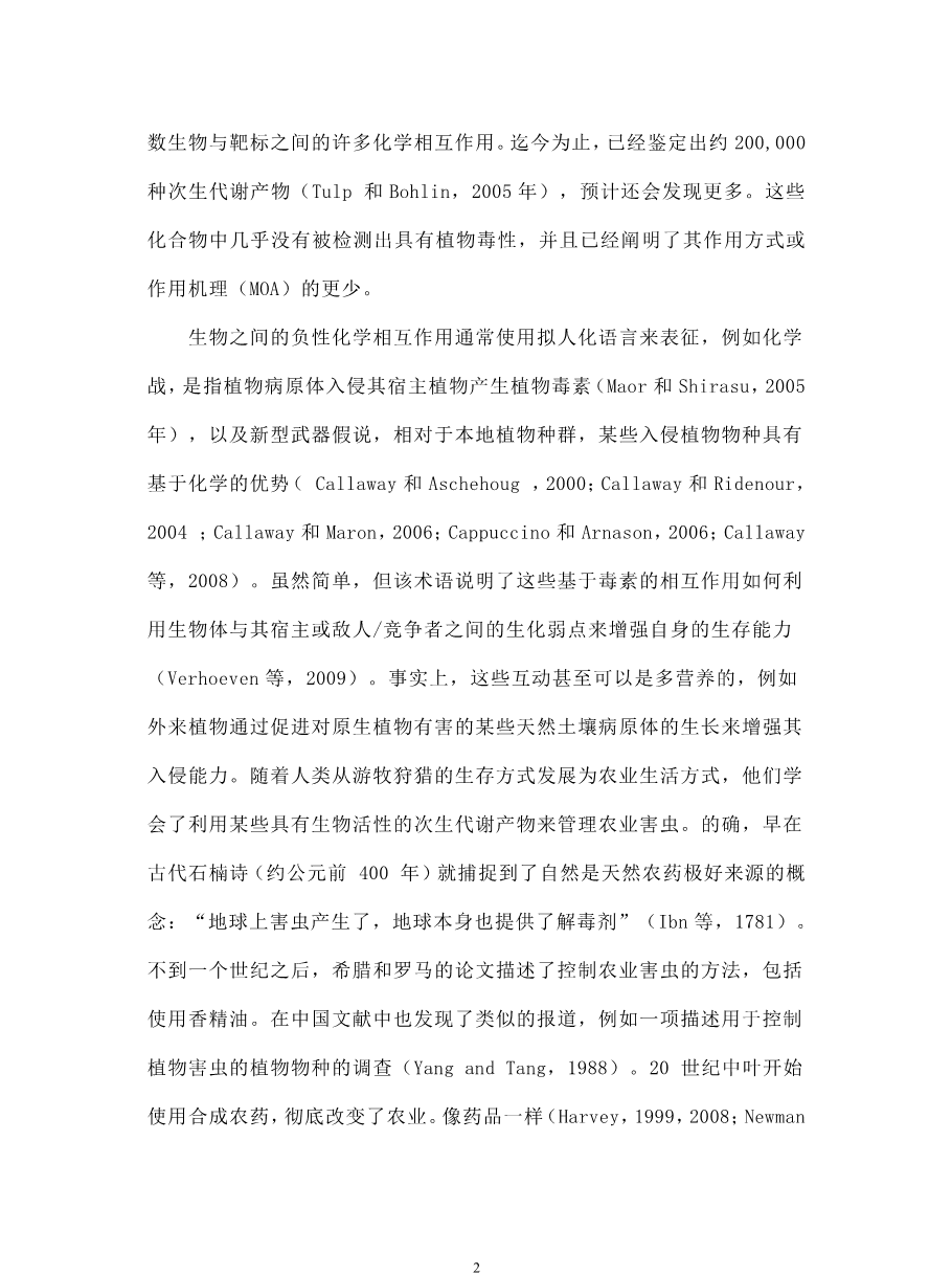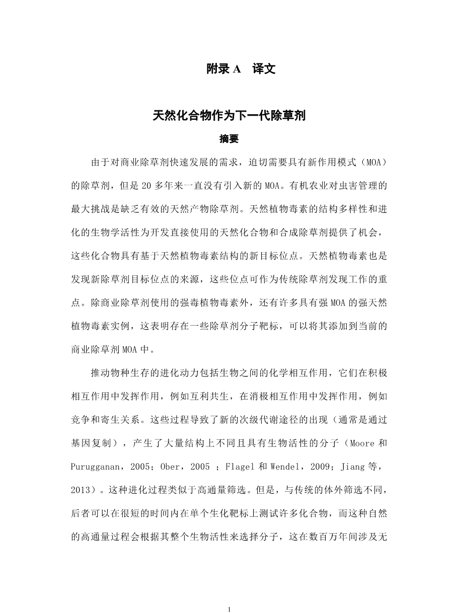 天然化合物作为下一-代除草剂外文翻译资料
