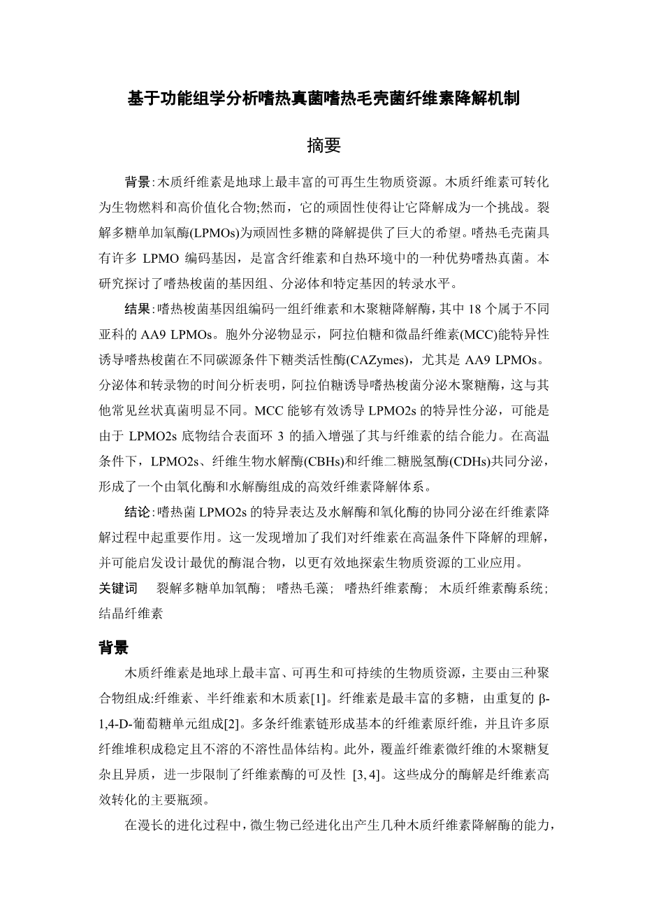 - 基于功能组学分析嗜热真菌嗜热毛壳菌纤维素降解机制外文翻译资料