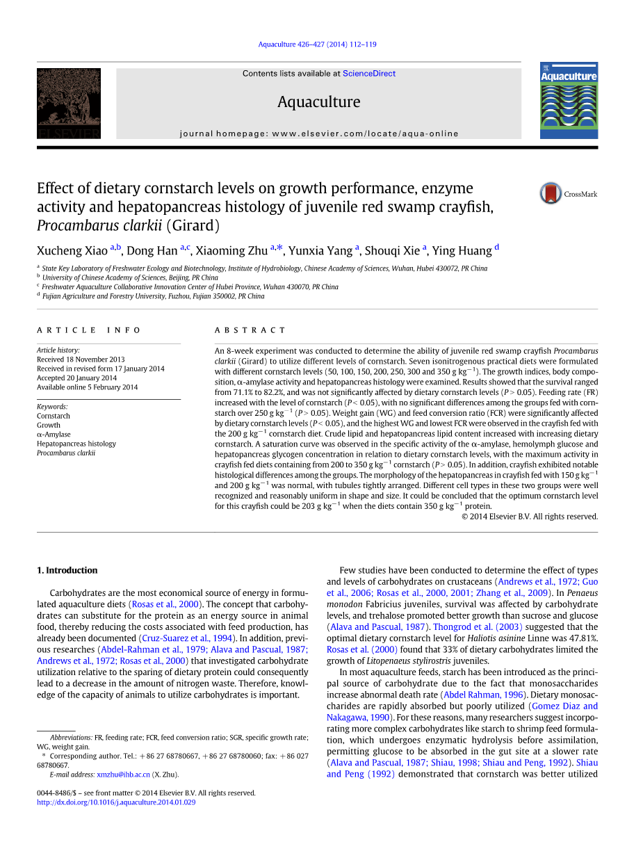 关键词:玉米淀粉,生长,alpha;淀粉酶,肝胰脏组织,克氏原螯虾
