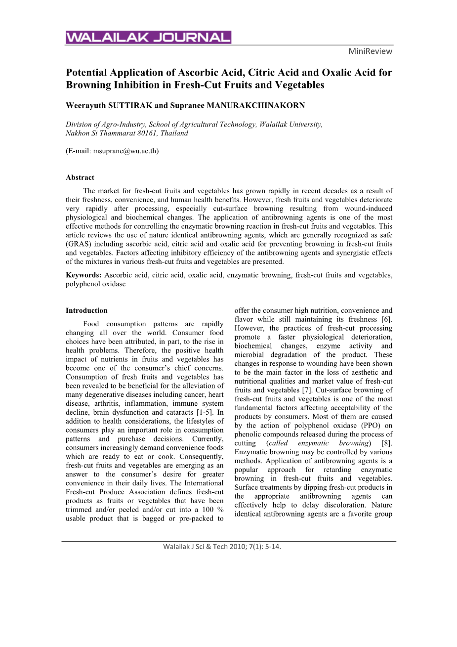 抗坏血酸、柠檬酸和草酸对现摘水果及蔬菜褐变抑制的潜在应用外文翻译资料