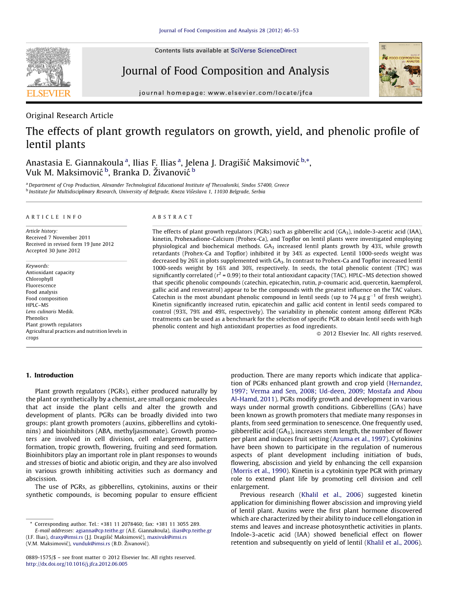 植物生长调节剂对小扁豆植物生长,产量和酚类物质的影响外文翻译资料