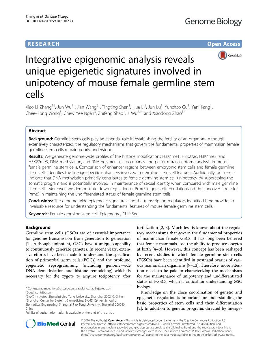 用表观遗传学综合分析的方法揭示雌性小鼠生殖干细胞单能性中蕴含的独特表观遗传特征