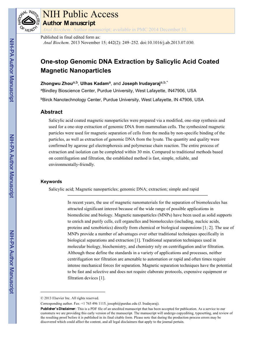 关键词:水杨酸; 磁性纳米粒子 基因组DNA; 提取; 简单快速