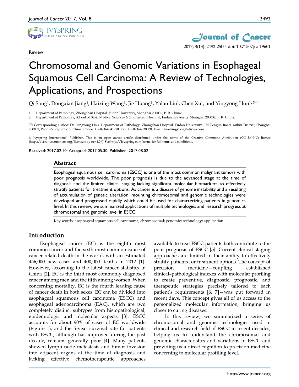 食管鳞癌染色体和基因组变异:关于技术,应用和探索的综述