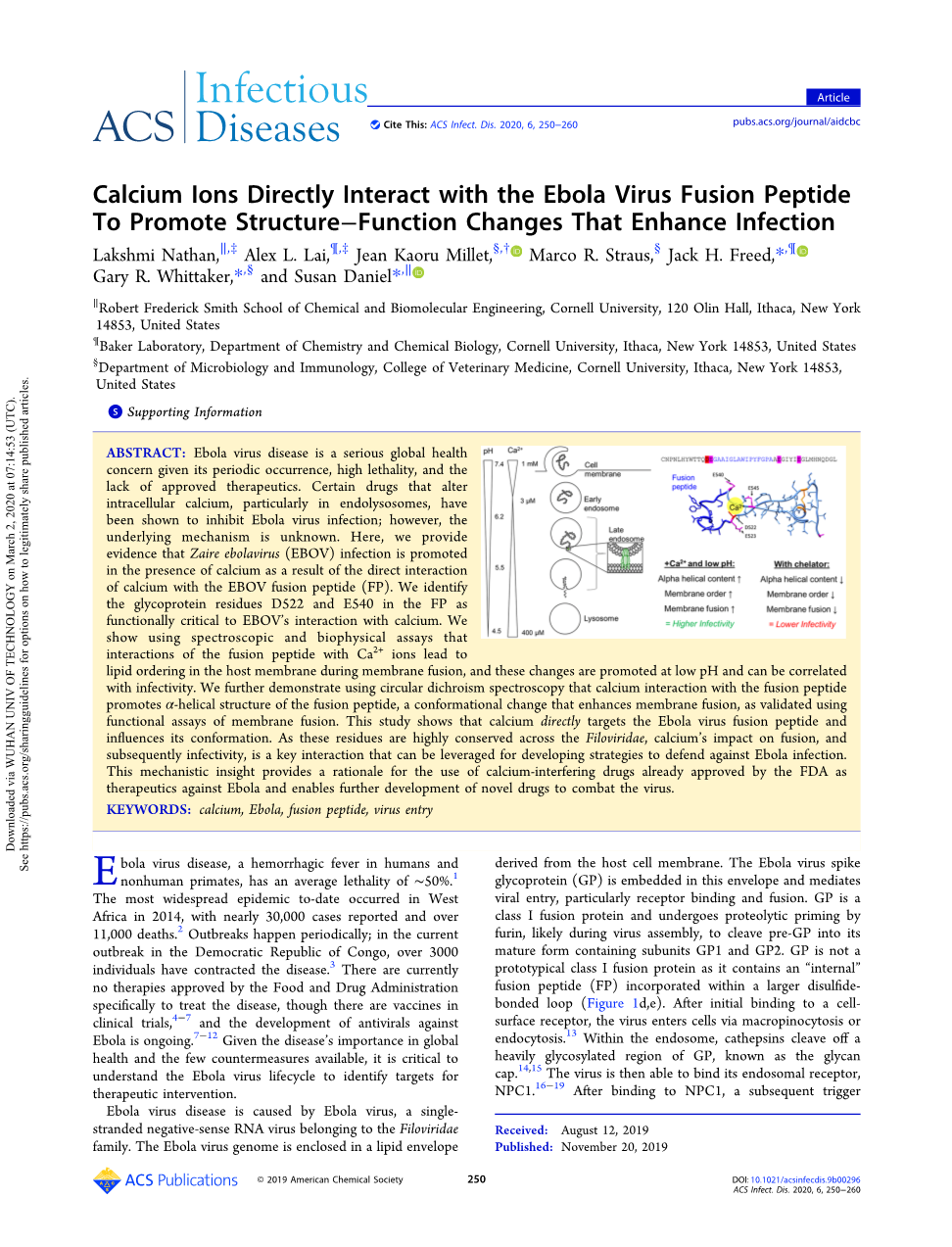钙离子直接与埃博拉病毒融合肽相互作用 促进增强感染的结构-功能变化外文翻译资料