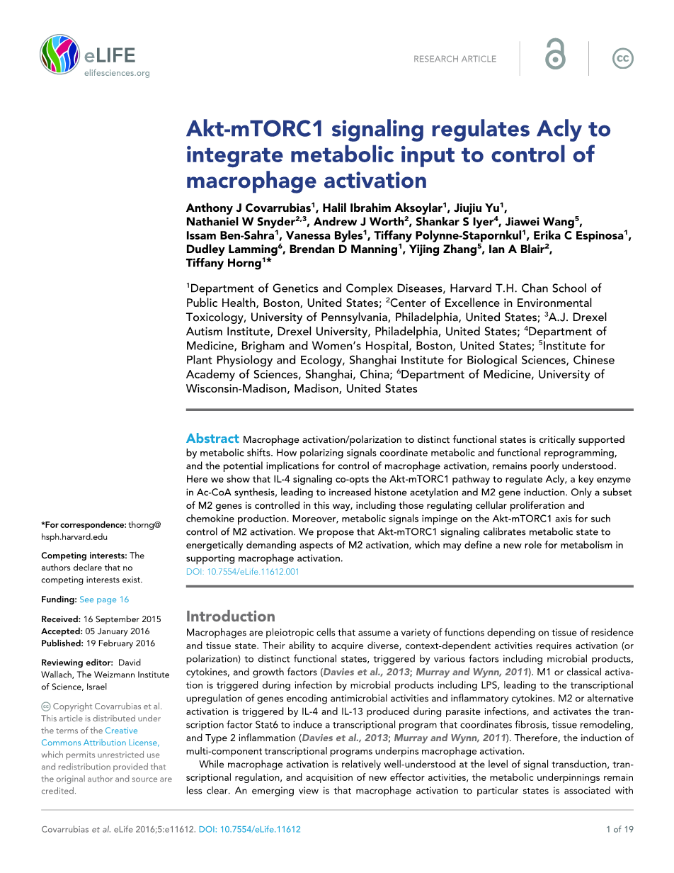 Akt-mTORC1信号调节Acly以整合代谢输入以控制巨噬细胞活化