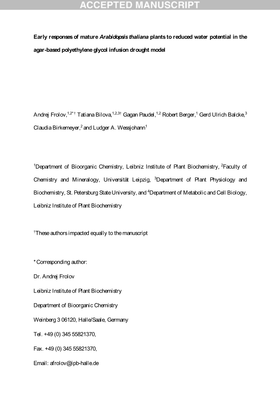 Andrej Frolov Tatiana Bilova Gagan Paudel Robert Berger Gerd Ulrich Balcke Claudia Birkemeyer Ludger A. Wessjohann