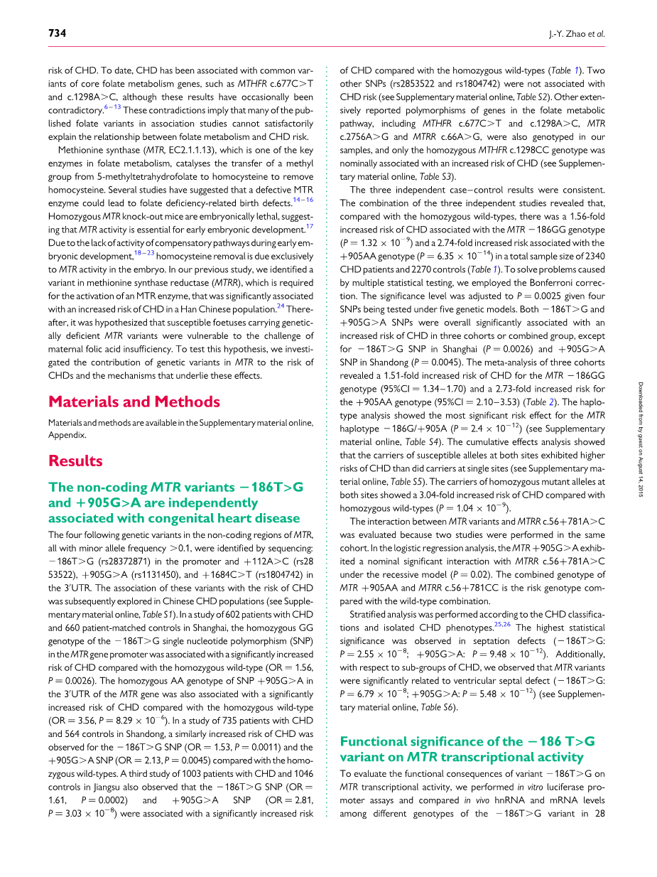 非编码MTR变体-186Tgt; G而 905Ggt; A是独立的与先天性心脏病有关。