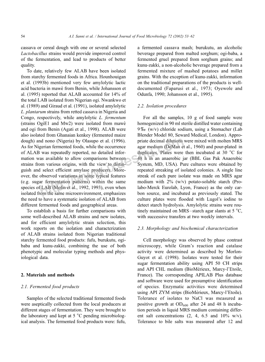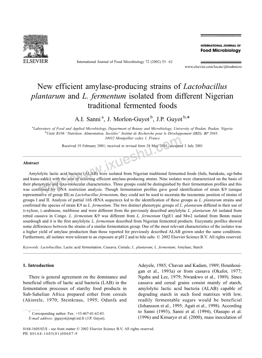 原文作者 A.I. Sanni a, J. Morlon-Guyot b, J.P. Guyot b,*