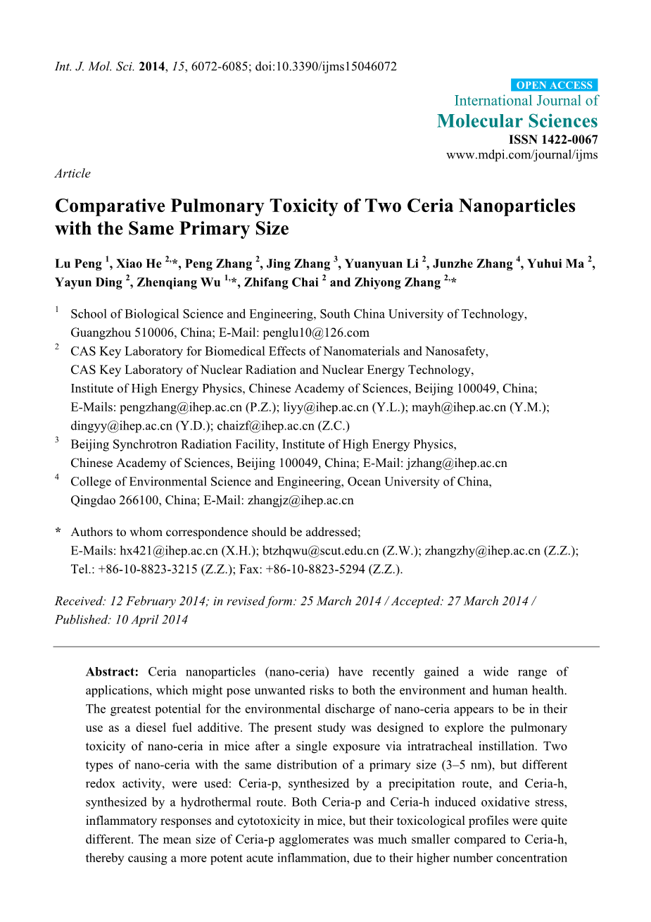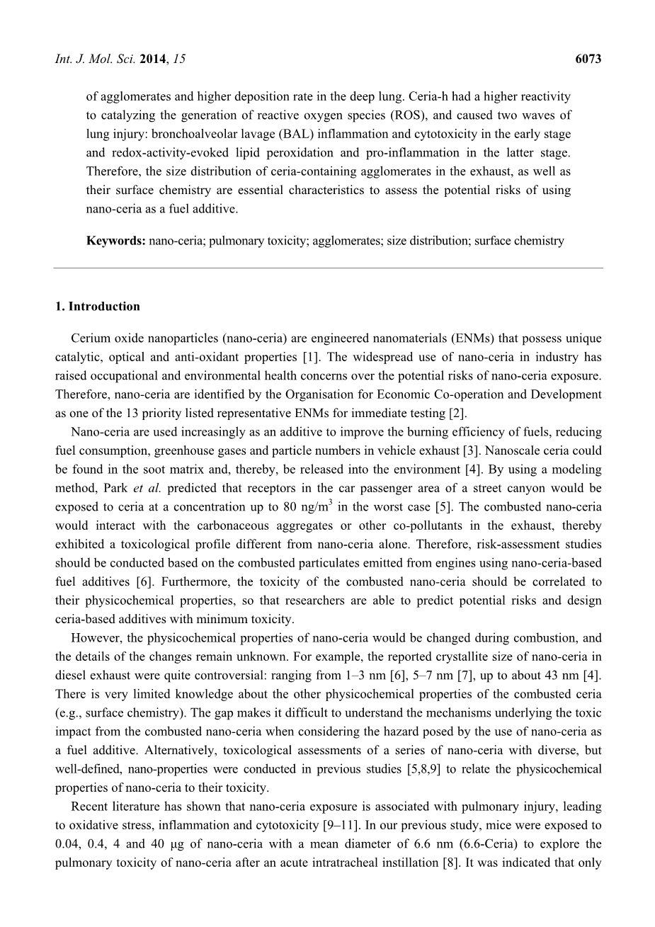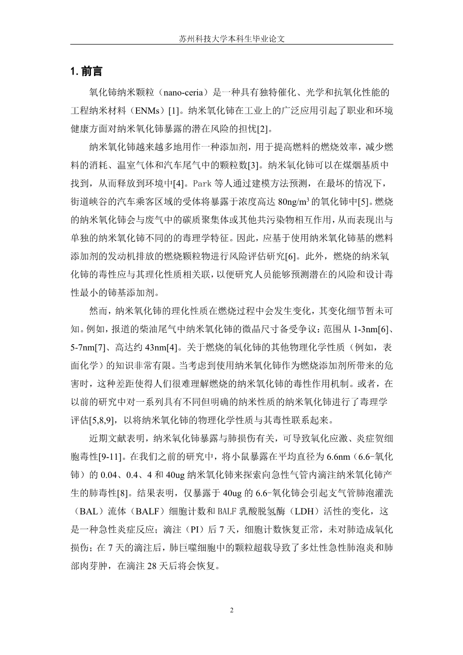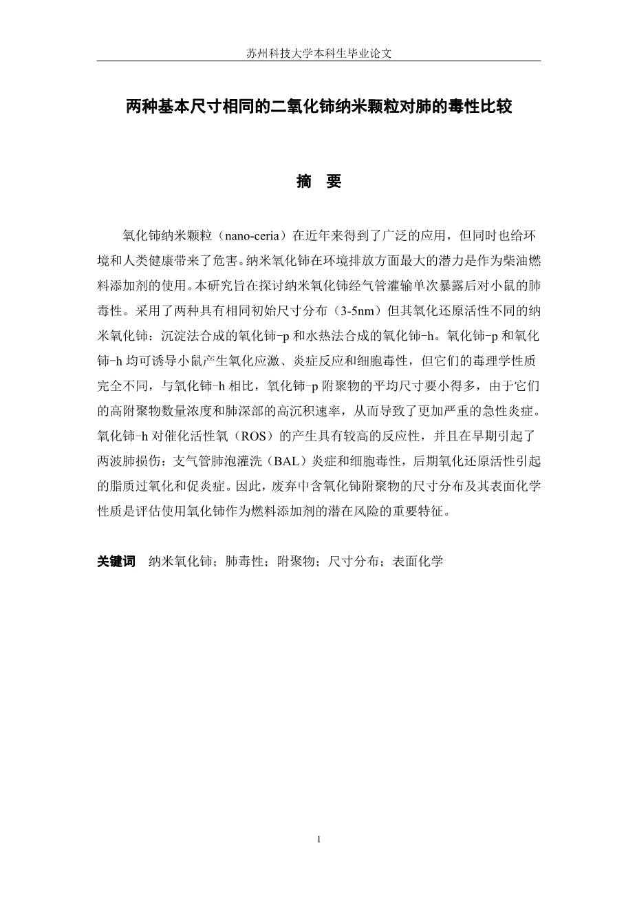 两种基本尺寸相同的二氧化铈纳米颗粒对肺的毒性比较外文翻译资料