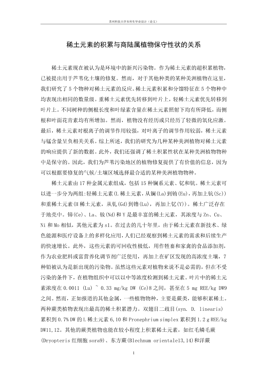 稀土元素的积累与商陆属植物保守性状的关系外文翻译资料