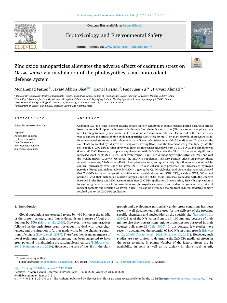 原文作者:Mohammad Faizan a, Javaid Akhter Bhat b,*, Kamel Hessini c, Fangyuan Yu a,*, Parvaiz Ahmad d,*