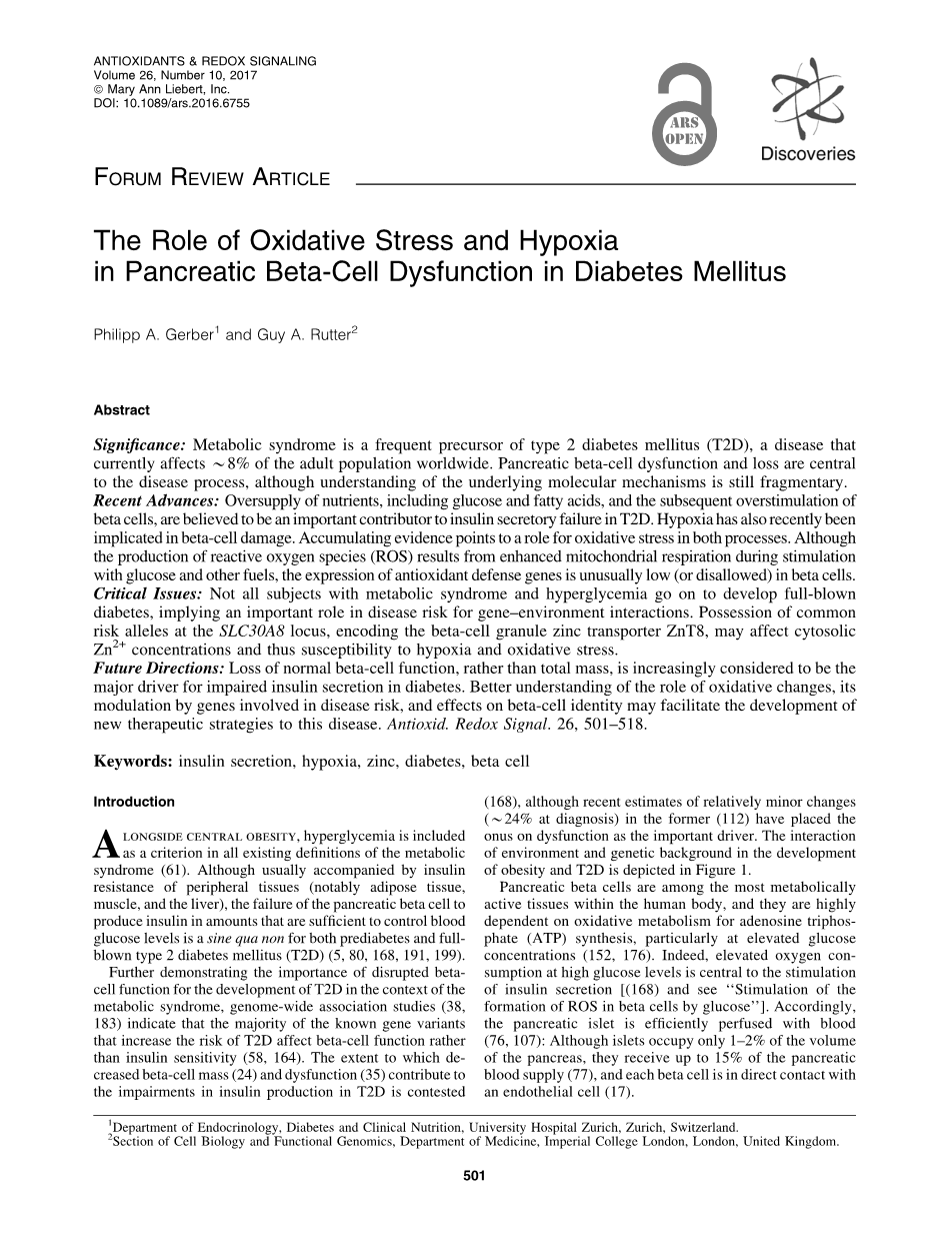 尽管事实上如此高水平的代谢活性和活性氧(ROS)是葡萄糖刺激过程中线粒体呼吸产物所不可避免的(甚至可能是正常葡萄糖感应所必需的),参与抗氧化防御的酶以异常低的水平存在或被beta;细胞中的不允许基因编码。正如下面所讨论的,这种不平衡可能使细胞非常容易受到氧化应激或缺氧引起的损伤。我们将在这里回顾这一假设。我们还讨论了GWAS基因、缺氧和氧化应激之间的相互作用,以及在代谢综合征中,后者的应激可能会降低功能细胞的特性和胰岛素分泌,但不一定会导致细胞破坏。