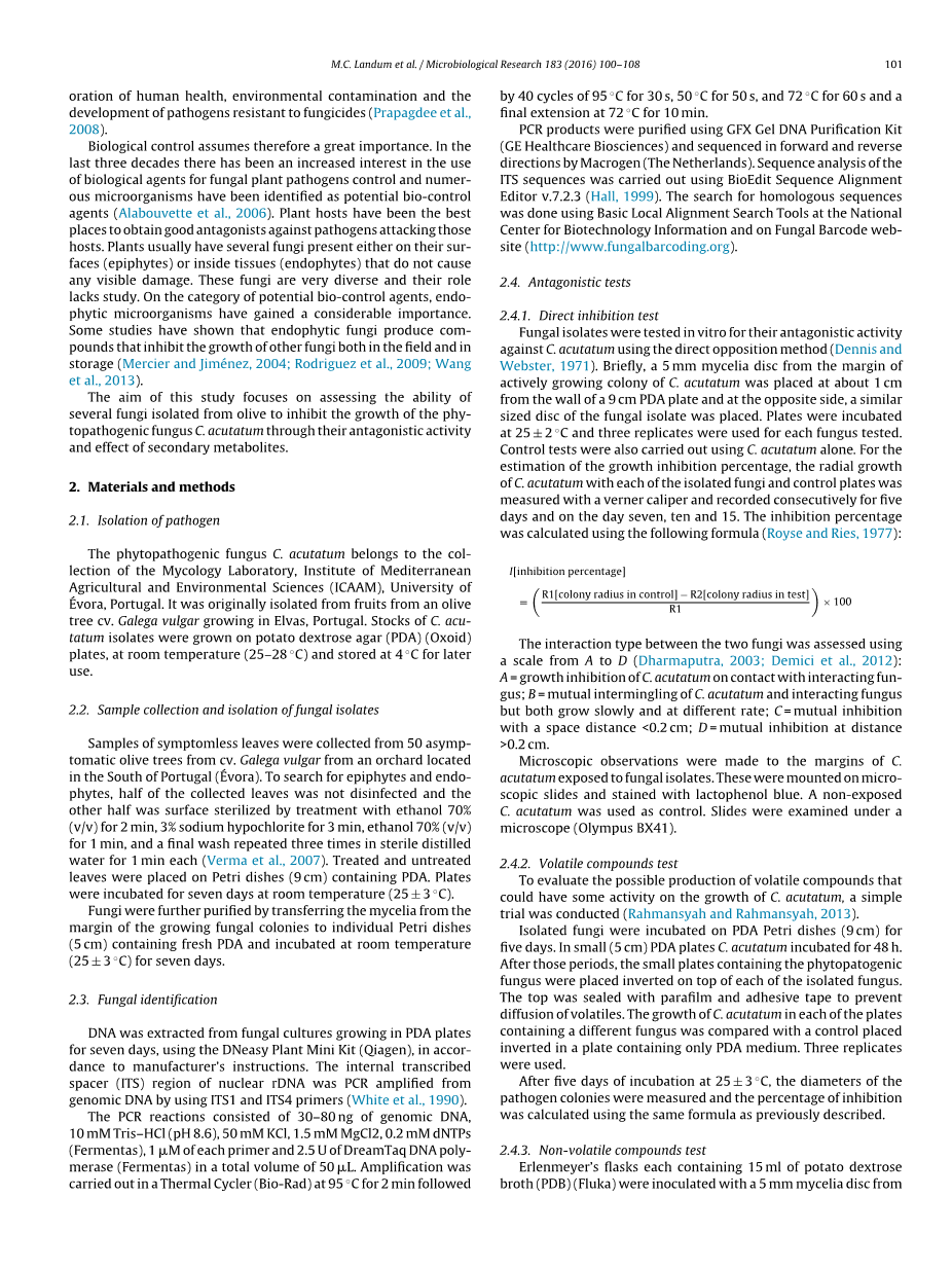 植物病原真菌茶炭疽病菌由地质学实验室,地中海农业与环境科学研究所(ICAAM)提供,它最初是从橄榄树cv的水果中分离出来的。生长在埃尔瓦什,葡萄牙的山羊豆属。