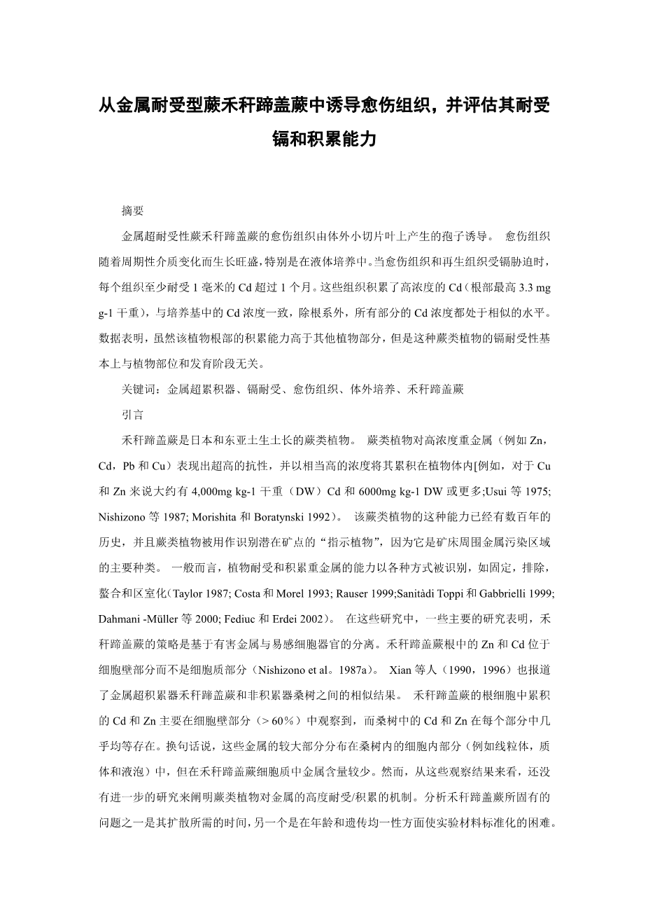 - 镉对水稻叶片生长和养分运输的短期影响外文翻译资料