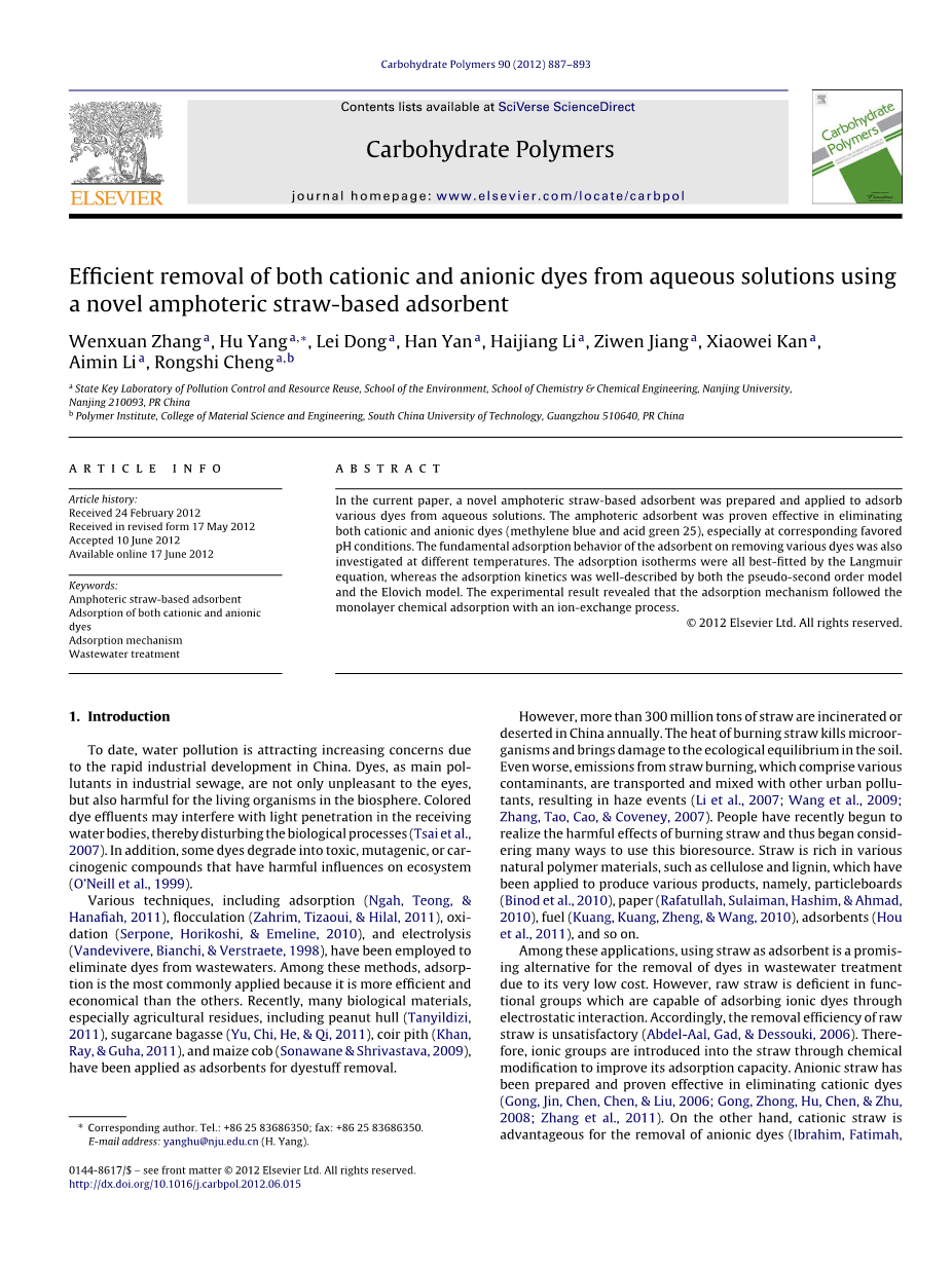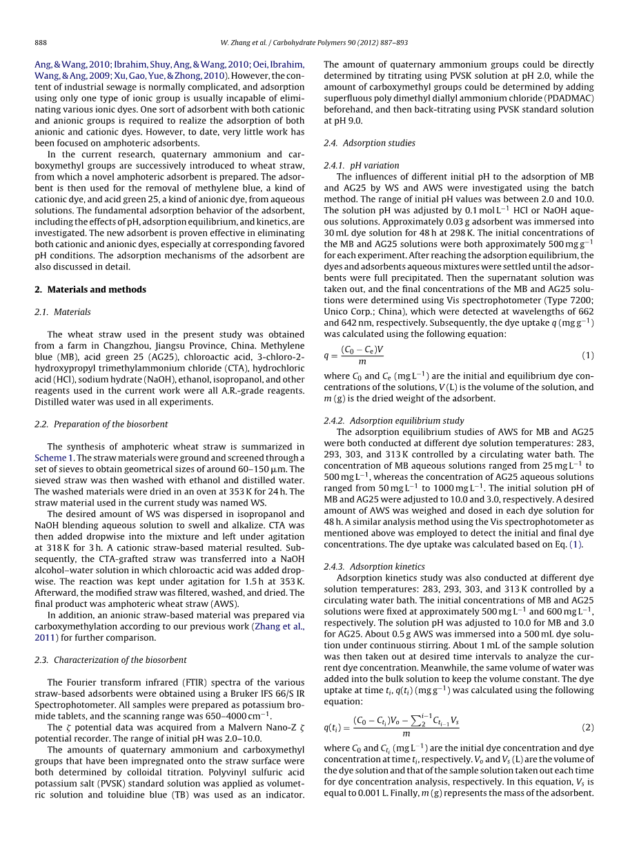 此外,根据我们以前的工作(Zhang等人,2011),为了进行进一步比较,我们通过羧甲基化制备了阴离子秸秆材料。
