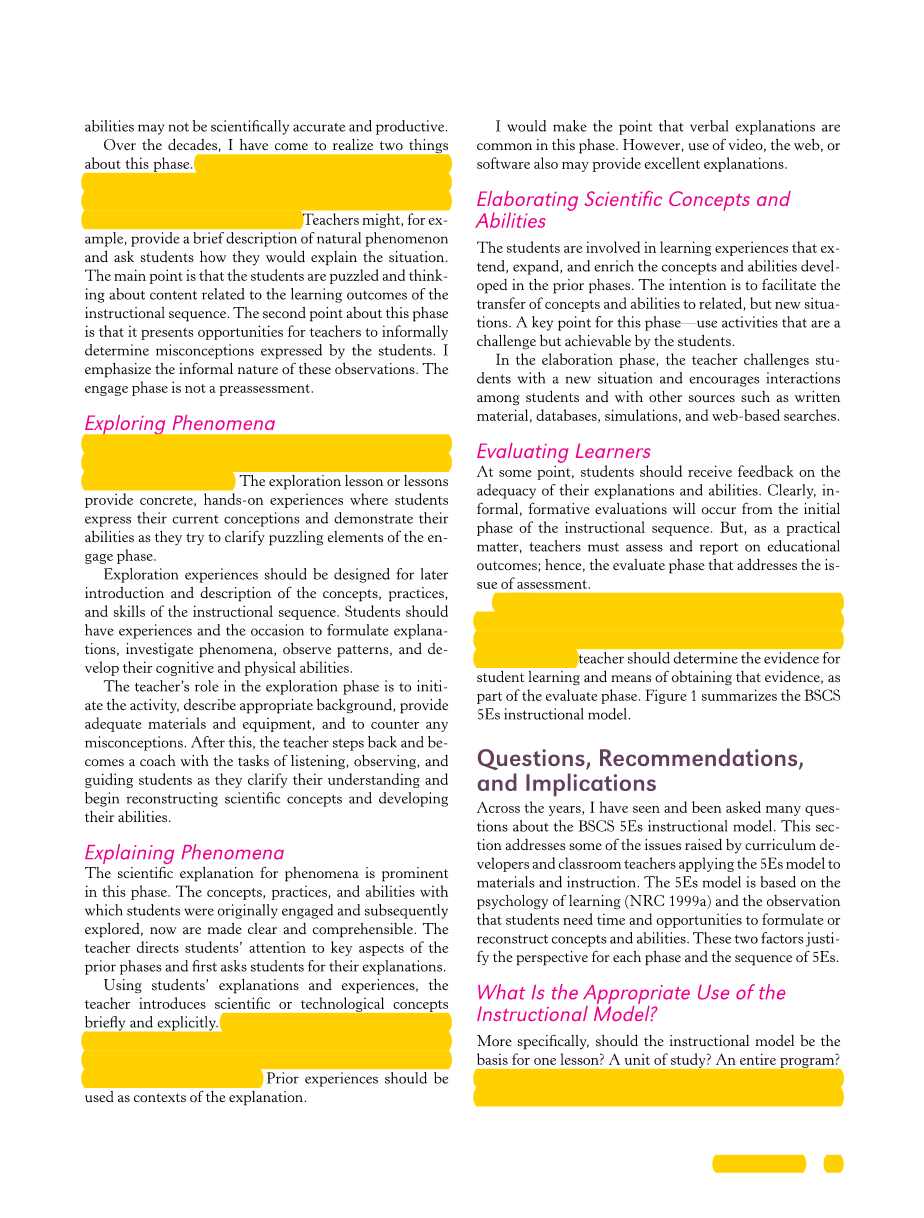 多年来,我看到并被问到许多关于BSCS 5E教学模式的问题,本节讨论课程开发者和课堂教师将5E模式应用到教材和教学中所提出的一些问题,5E模型基于学习心理学(NRC 1999a)和观察,即学生需要时间和机会来制定或重建概念和能力,这两个因素证明了每个阶段和5E序列的前景。