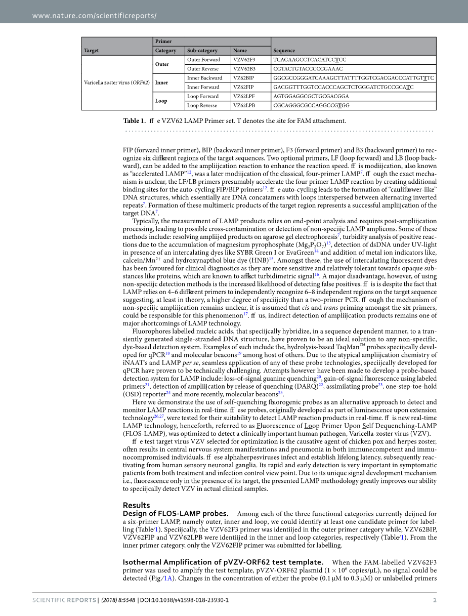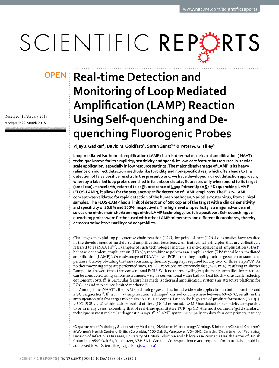 本文献展示了使用自猝灭荧光探针作为实时检测和监测LAMP反应的替代方法。这些探针最初是作为发光延伸技术的一部分进行开发的,测试了它们对实时检测LAMP反应产物的适用性。这种新型的实时荧光LAMP技术,即自灭LAMP上的环状引物荧光(FLOS-LAMP),可用于检测临床上重要的人类病原体水痘带状疱疹病毒(VZV)。