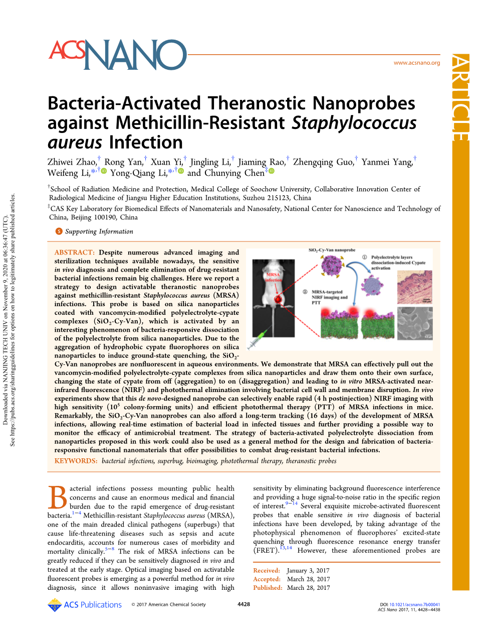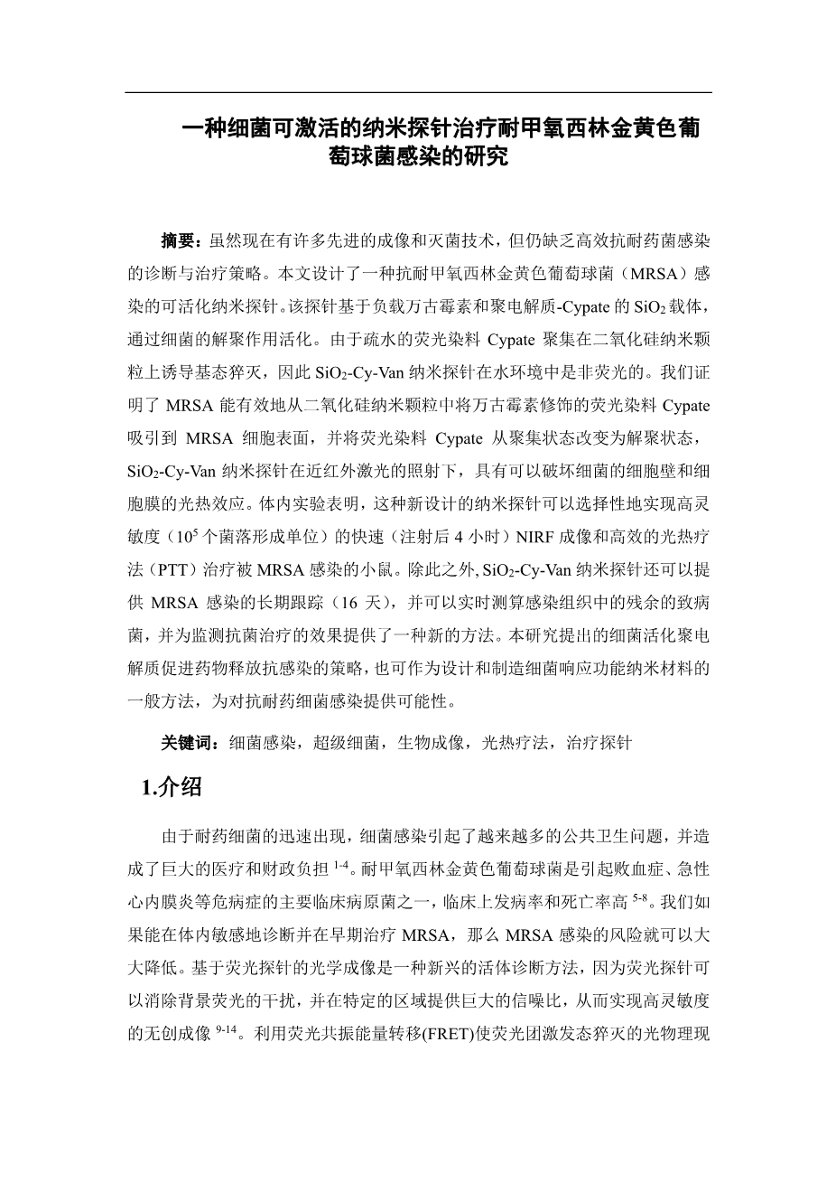 一种细菌可激活的纳米探针治疗耐甲氧西林金黄色葡 萄球菌感染的研究外文翻译资料