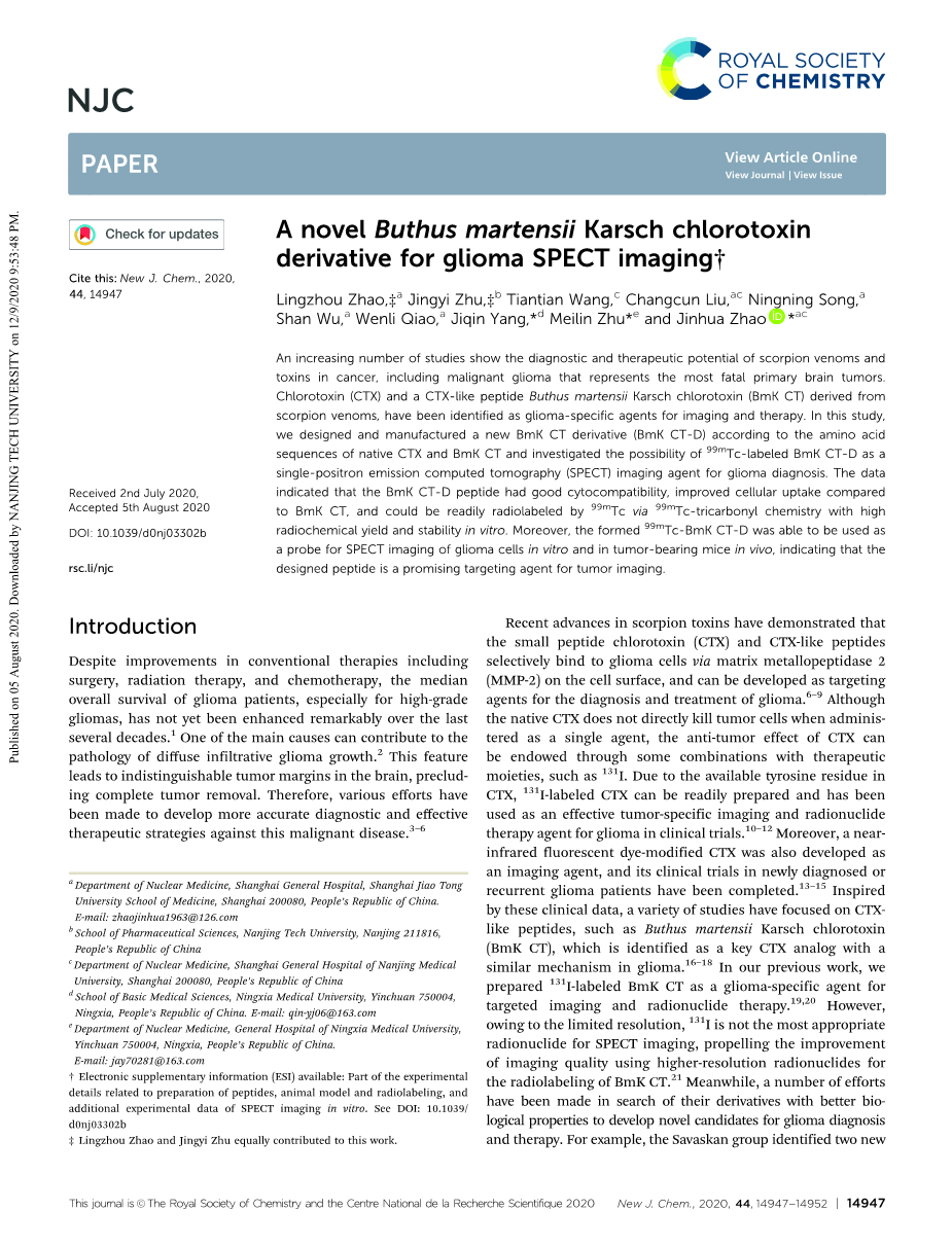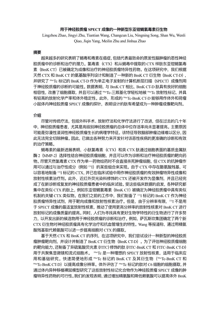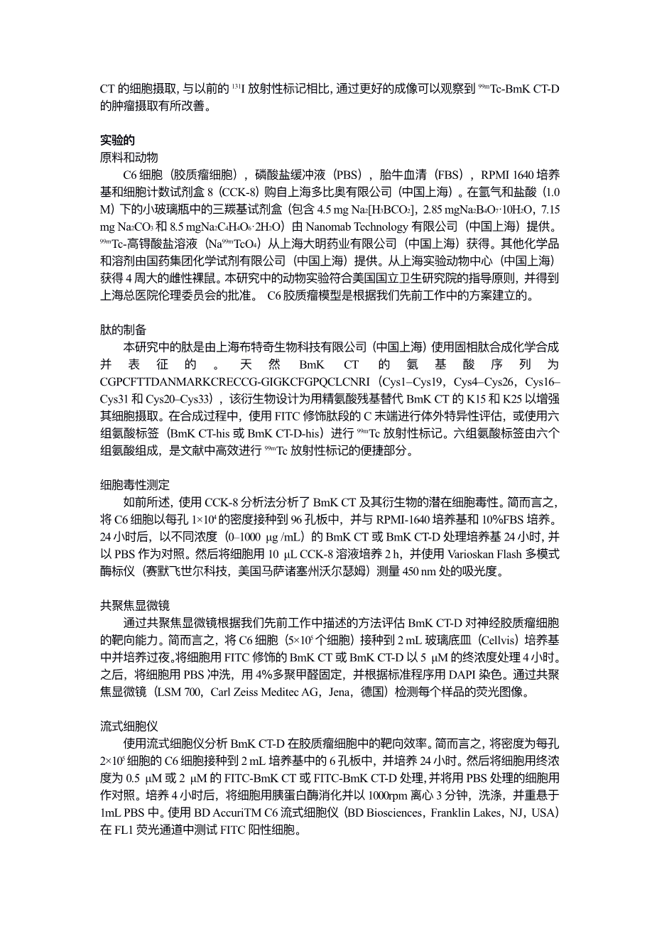 - 用于神经胶质瘤SPECT成像的一种新型东亚钳蝎氯毒素衍生物外文翻译资料